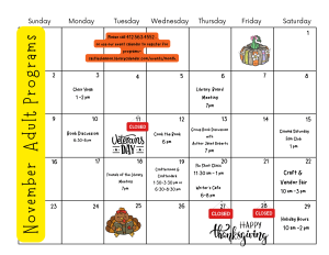 We Hope You Join Us in November For Our Upcoming Adult and Children’s Programs!
