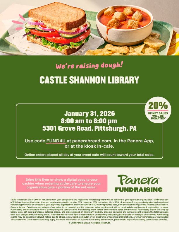 Come out & support us on Saturday, January 31st from 8am-8pm at the Caste Village location of Panera.